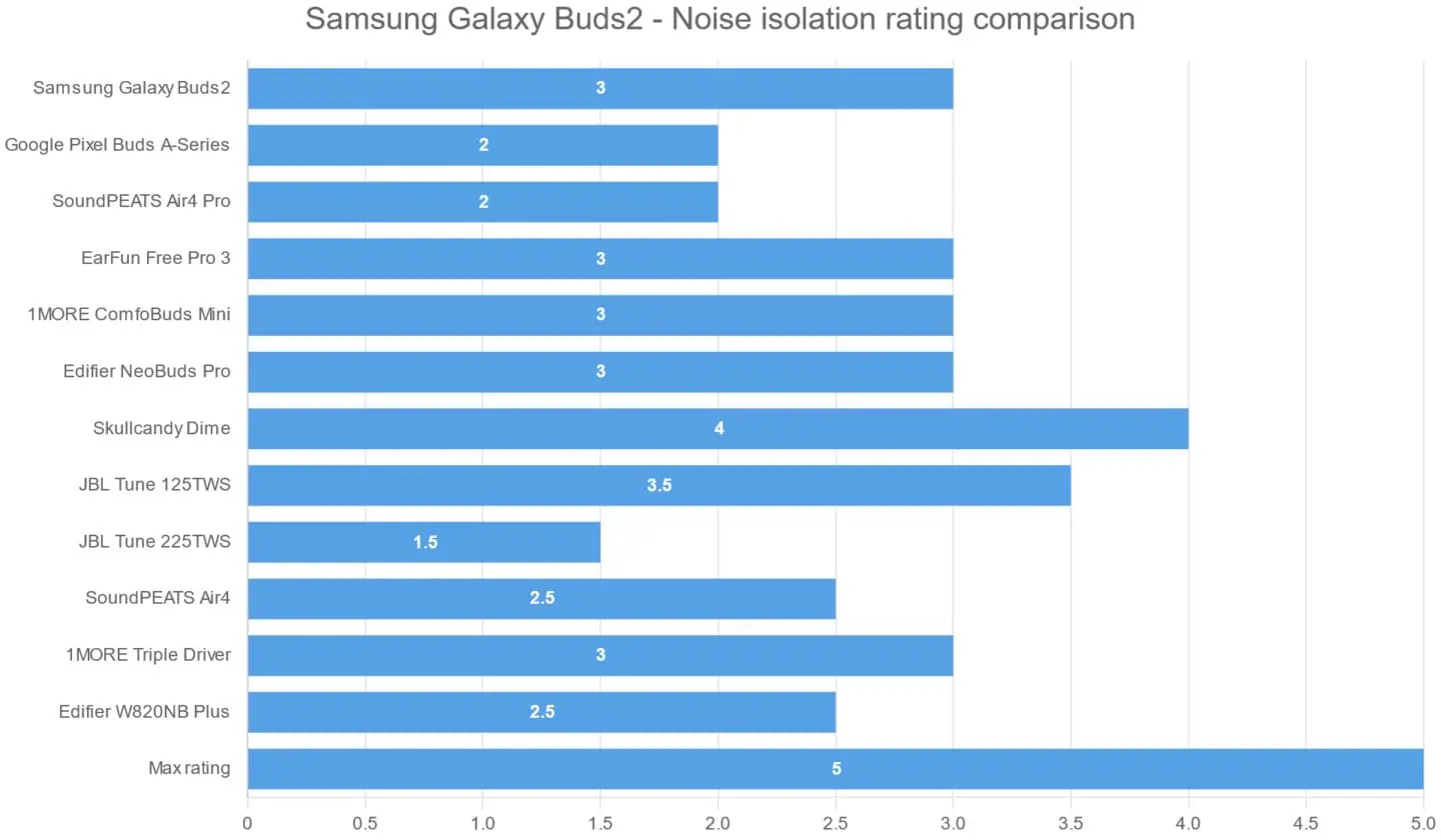 Samsung Galaxy Buds2 – Noise isolation rating comparison