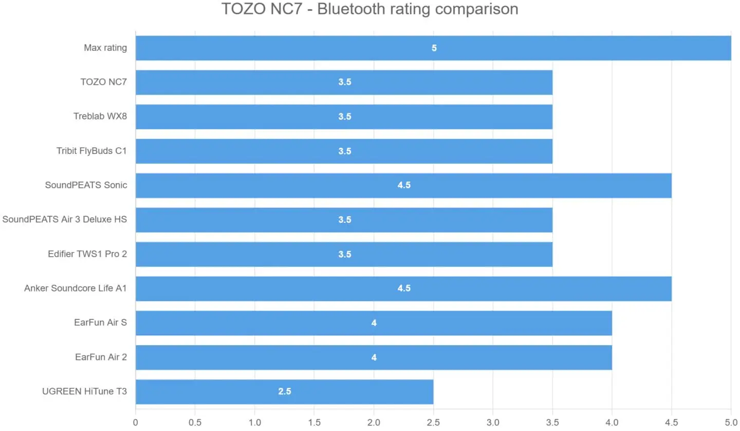 TOZO NC7 – Bluetooth rating comparison