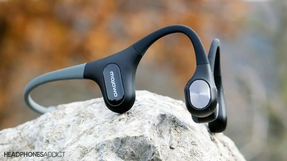 Editorrating 3.8 Mojawa Mojo2 are higher-end bone conduction headphones with one of the lightest and most comfortable designs. They make a great outdoor running partner as long as you don’t run for too long. Bone conduction headphones have a reputation for being a perfect outdoor workout companion, where their open-ear design ensures awareness and maximum safety. Learn more on bone conduction tech in headphones. However, a fully exposed ear canal usually means one major trade-off: worse sound quality. While Mojawa Mojo2 can’t replace your regular ear buds, they sound surprisingly clear for this type of headphone. Compared to other bone-conduction headphones, the Mojo2 have almost zero bass. However, they replace that with a pretty clear midrange and inoffensive treble, offering a satisfactory listening experience. But is this enough to justify their price of $110 (originally $150)? How are they in other categories? Let’s find out all the pros and cons in the review below. We test and evaluate headphones using a standardized 9-point methodology. When you buy through links on our site, we may earn a commission. Learn more. Bone Conduction Headphones, MOJAWA MOJO2 Open Ear Wireless Bluetooth Headphones, Sports Headset… Bone Conduction Headphones, MOJAWA MOJO2 Open Ear Wireless Bluetooth Headphones, Sports Headset… $56.99 $89.99 in stock 1 used from $53.93 as of November 13, 2025 4:44 pm Buy now Amazon.com Great comfort & excellent stability, even during workout Sleek, lightweight & flexible design Fully water & dustproof with an IP67 rating Good sound quality for bone-conduction headphones But lacking bass and treble energy Below average battery life of 5.5 hours Accidently activating Voice Assistant with your earlobes Editorrating 3.8 By HeadphonesAddict Userratings 2.8 User Ratings: 8 Category Sound Comfort & Fit Durability Battery Features Noise Isolation Bluetooth Value Our rating 3.5 4.5 4.5 3.0 4.0 3.5 3.5 4.0 User rating 4.0 4.0 2.5 1.5 3.0 2.0 3.5 1.5 RATE THIS MODEL User Rating _._ No Rating 1.0 Bad 1.5 Meh 2.0 Acceptable 2.5 Average 3.0 Good 3.5 Almost great 4.0 Great 4.5 Almost Perfect 5.0 Fantastic User Rating _._ No Rating 1.0 Bad 1.5 Meh 2.0 Acceptable 2.5 Average 3.0 Good 3.5 Almost great 4.0 Great 4.5 Almost Perfect 5.0 Fantastic User Rating _._ No Rating 1.0 Bad 1.5 Meh 2.0 Acceptable 2.5 Average 3.0 Good 3.5 Almost great 4.0 Great 4.5 Almost Perfect 5.0 Fantastic User Rating _._ No Rating 1.0 Bad 1.5 Meh 2.0 Acceptable 2.5 Average 3.0 Good 3.5 Almost great 4.0 Great 4.5 Almost Perfect 5.0 Fantastic User Rating _._ No Rating 1.0 Bad 1.5 Meh 2.0 Acceptable 2.5 Average 3.0 Good 3.5 Almost great 4.0 Great 4.5 Almost Perfect 5.0 Fantastic User Rating _._ No Rating 1.0 Bad 1.5 Meh 2.0 Acceptable 2.5 Average 3.0 Good 3.5 Almost great 4.0 Great 4.5 Almost Perfect 5.0 Fantastic User Rating _._ No Rating 1.0 Bad 1.5 Meh 2.0 Acceptable 2.5 Average 3.0 Good 3.5 Almost great 4.0 Great 4.5 Almost Perfect 5.0 Fantastic User Rating _._ No Rating 1.0 Bad 1.5 Meh 2.0 Acceptable 2.5 Average 3.0 Good 3.5 Almost great 4.0 Great 4.5 Almost Perfect 5.0 Fantastic CONTENTS (show more) Mojawa Mojo2 review is part of HeadphonesAddict’s coverage of top bone conduction headphones. Sound 3.5 Almost Great Mojawa Mojo2 output almost no bass, but thanks to a balanced and clear midrange, they make your music pretty enjoyable during your workout routine. Bone conduction technology has come a long way in improving sound quality. Some models sound pretty close to regular earphones, but that level of clarity is still reserved for the most premium models. That said, Mojawa Mojo2 cost $150 (currently discounted to $110), which is pretty much in the premium territory. But do they sound premium as well? Bass: Barely any rumble, only gentle drum kicks Some bone-conduction headphones do it better than the other, but in the case of the Mojo2, they aren’t the best. Regardless of the manufacturer’s claims of improved pumping bass. I’m not a basshead by any means, and I still think there’s very little bass on the Mojo2. You get it just enough to prevent the sound from being thin, but only in a quiet room when sitting still. Transducer size comparison between Mojawa Mojo2 and Orange O Bones. Moving outside drowns out everything that has remained from the low-frequency range, so don’t expect to hear low frequencies when working out. It seems like the relatively small transducers can’t keep up with the punch. Like on Orange O Bones, which definitely feel bassier and fuller in comparison. Interestingly, the Mojo2 and O Bones vibrate to the same extent, despite having different bass quantities. Midrange: Pretty clear and free of harshness While Mojawa Mojo2 lack bass, they make it up for a relatively balanced midrange. While the tuning and the sound are a bit muffled, it’s good enough for casual listening. The best thing about the mid frequencies is that they aren’t shouty or sibilant, which would result in a fatiguing listening experience. Of course, the sound is still a bit hollow and distant, which is something that affects all bone-conduction headphones. Treble: Severely recessed Similarly to the low-end, treble could be much better. There’s a minimal extension, and the cymbal crashes are barely audible. The only thing you somewhat hear are the cymbal hits. They produce an okay texture, but you probably won’t notice them during a workout. A tiny animal paw on the inner side of the transducer. The soundstage is pretty wide, but it doesn’t feel that engaging due to the lack of detail. It’s similar with the imaging, which is sometimes blurry, yet sometimes decently accurate. Nevertheless, Mojawa Mojo2 transmit most of their sound through cheekbones, so you can’t expect them to replace regular headphones anytime soon. For what they are, they perform relatively well. These will do just fine if you mainly want to hear instruments and vocals. But you should look elsewhere if you also like t